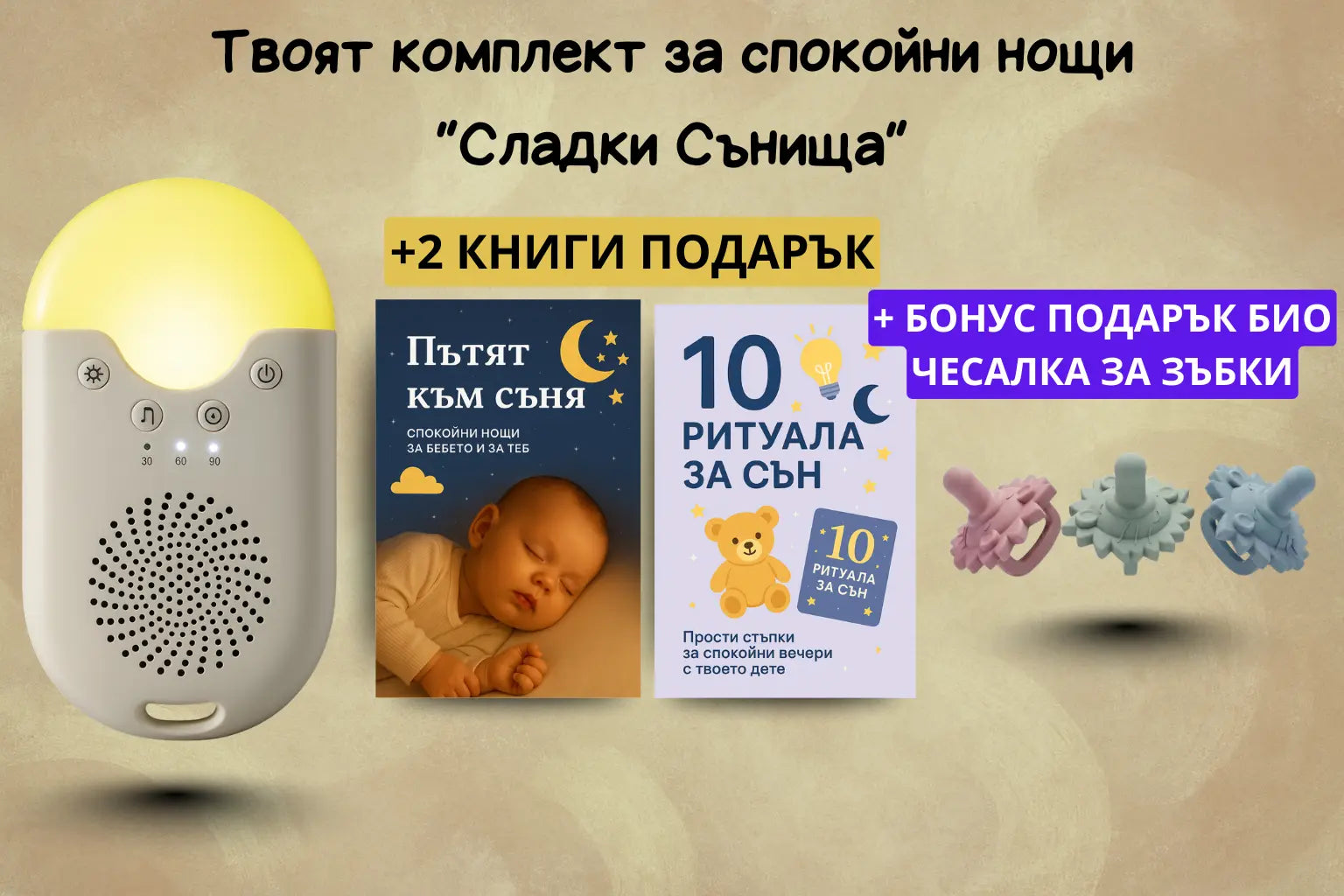 За разлика от мобилните устройства, които някои родители използват за пускане на бял шум, "Сладки сънища" не излъчва никакви вълни или радиация. Без Bluetooth, Wi-Fi или екрани – само чист звук и светлина, създадени специално за нуждите на бебето.