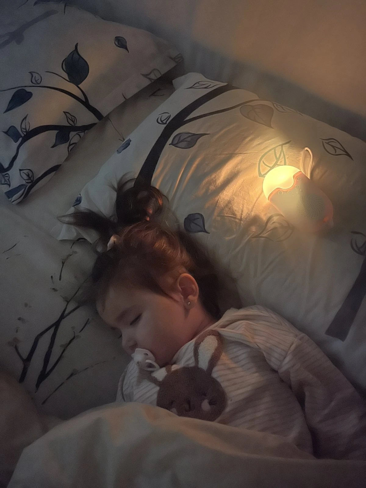 Нежна LED светлина с ритъм като дишане създава усещане за присъствие – сякаш мама е до бебето. Можете да я изключите или да изберете от 3 нива на осветление.